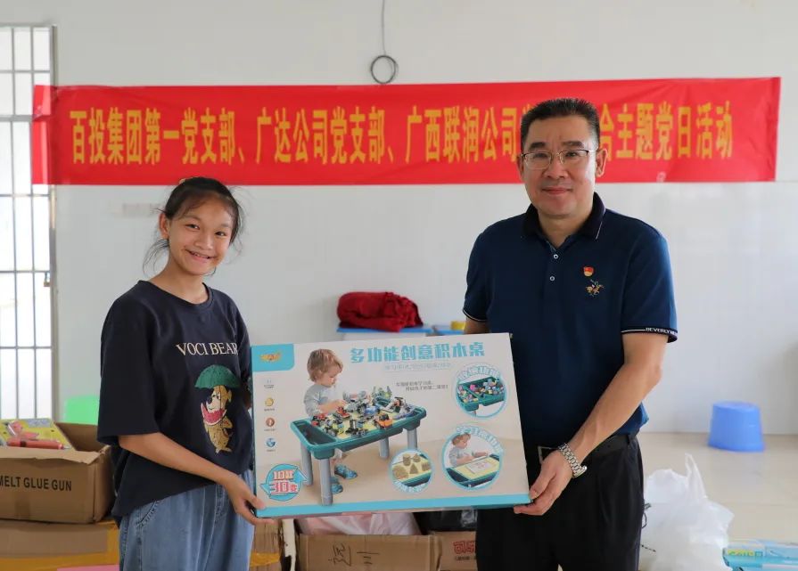 2022年6月23日,百投集團(tuán)第一黨支部、廣達(dá)黨支部、聯(lián)潤(rùn)公司黨支部組織部分黨員到百色市特殊教育學(xué)校開(kāi)展以“喜迎二十大 同心護(hù)未來(lái) ” 為主題的送溫暖黨日活動(dòng),集團(tuán)公司黨委副書(shū)記、工會(huì)主席、監(jiān)事會(huì)主席黃源東參加活動(dòng)。